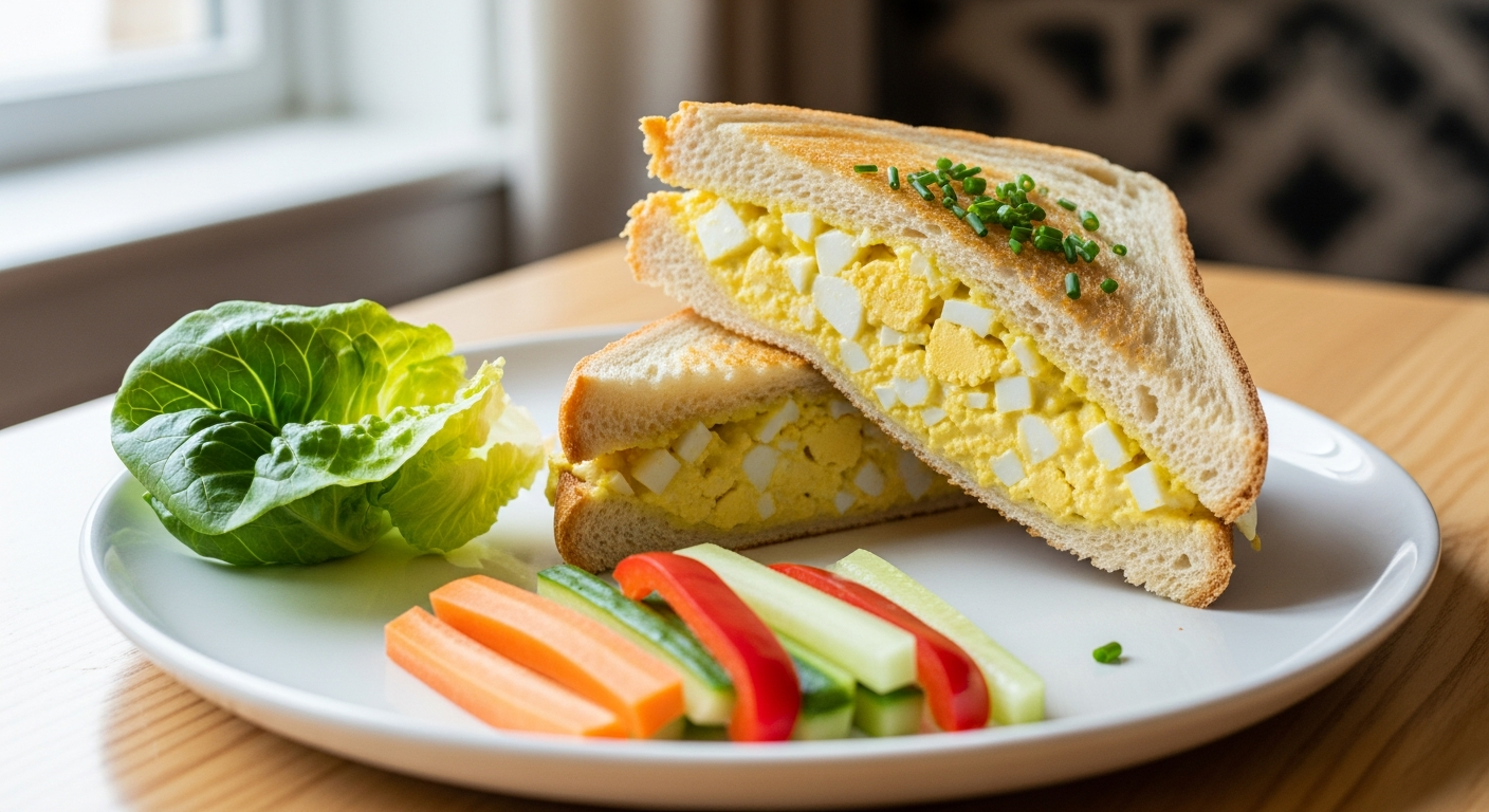 Plate your egg salad sandwich alongside crunchy raw vegetable sticks or a vibrant green salad tossed with a light vinaigrette. Garnish with fresh chives or a thin lemon wedge for visual appeal and a burst of zest. For picnics, wrap sandwiches in parchment paper tied with twine-instantly charming and practical.