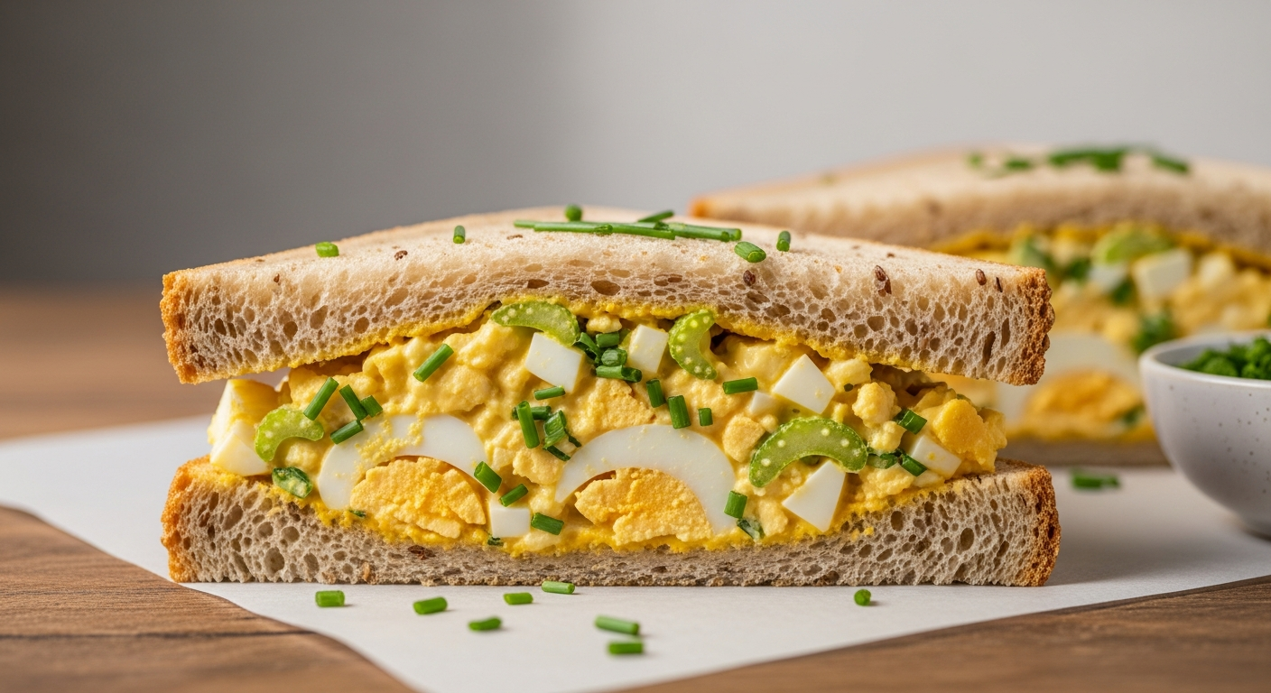 Counting ​Calories: What's in ⁣your Egg​ Salad Sandwich? A⁤ perfectly crafted egg salad sandwich with ⁤fresh chives ‌garnish