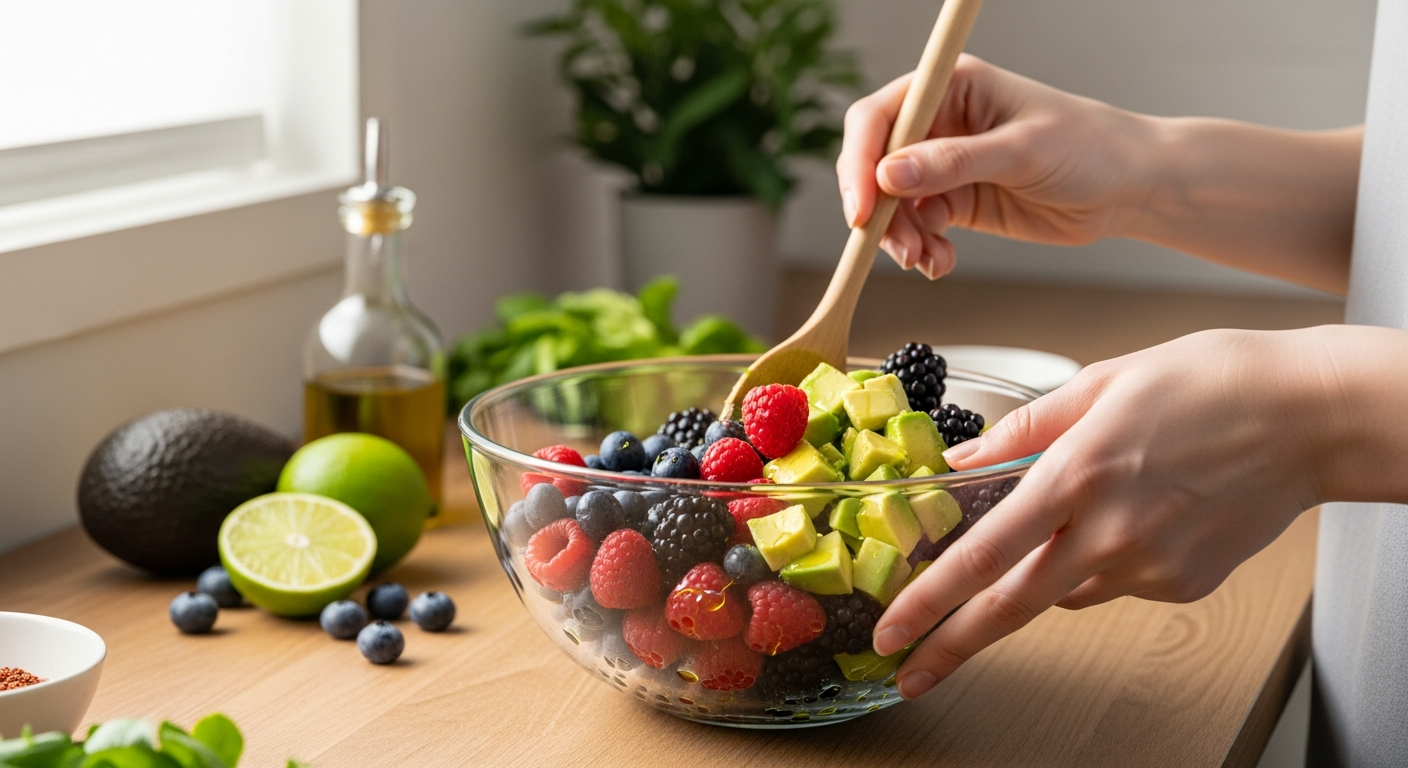 - Prepare the avocado: Dice the avocado into bite-size pieces and add to the berry mixture for creamy texture.