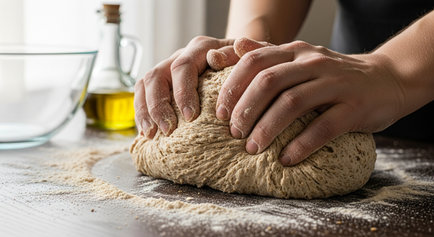 - Hydration: Whole wheat flour absorbs more water than white flour.Adjust with an extra tablespoon of water if the dough feels too dry during kneading.
